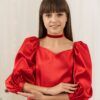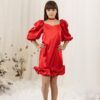 Crafted from luxurious red taffeta, Michelle dress features a smooth, lustrous finish that catches light beautifully with every step. The fitted bodice and gently flared skirt create a timeless silhouette, while subtle pleating adds volume and elegance without compromising comfort.